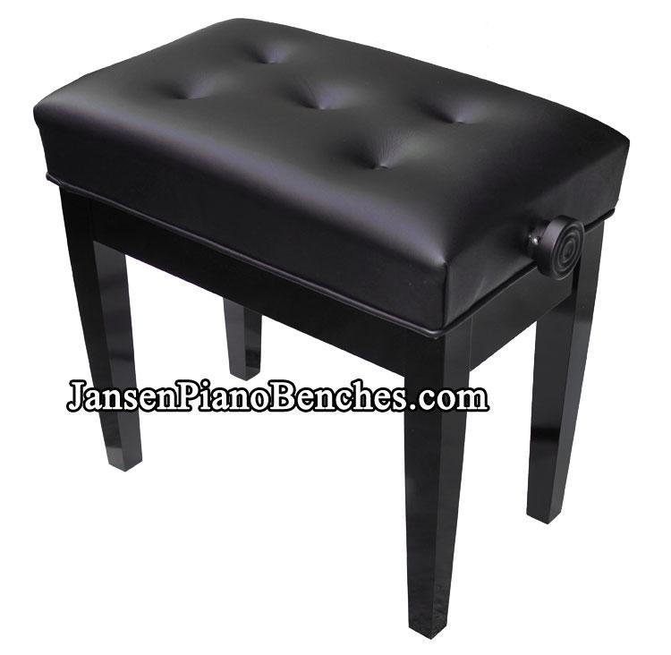 The Jansen Petite Artist Bench is the highest quality, American-made petite artist bench available on today's market. The piano bench is constructed of hardwood maple from the East Coast of the USA (known for it's beautiful wood grain), and is supported with heavy-duty brass hardware. The upholstered top uses the highest-end furniture-grade vinyl or genuine leather, and the padding of the bench is an extra-thick, firm polyester foam that will not break down over time. Petite artist benches are ideally suited for Baby Grand pianos, uprights, or anywhere where a smaller-sized bench fits better. Many people find the more conservative top design (compared to the diamond-tufted top on standard artist benches), is better suited for their particular needs.