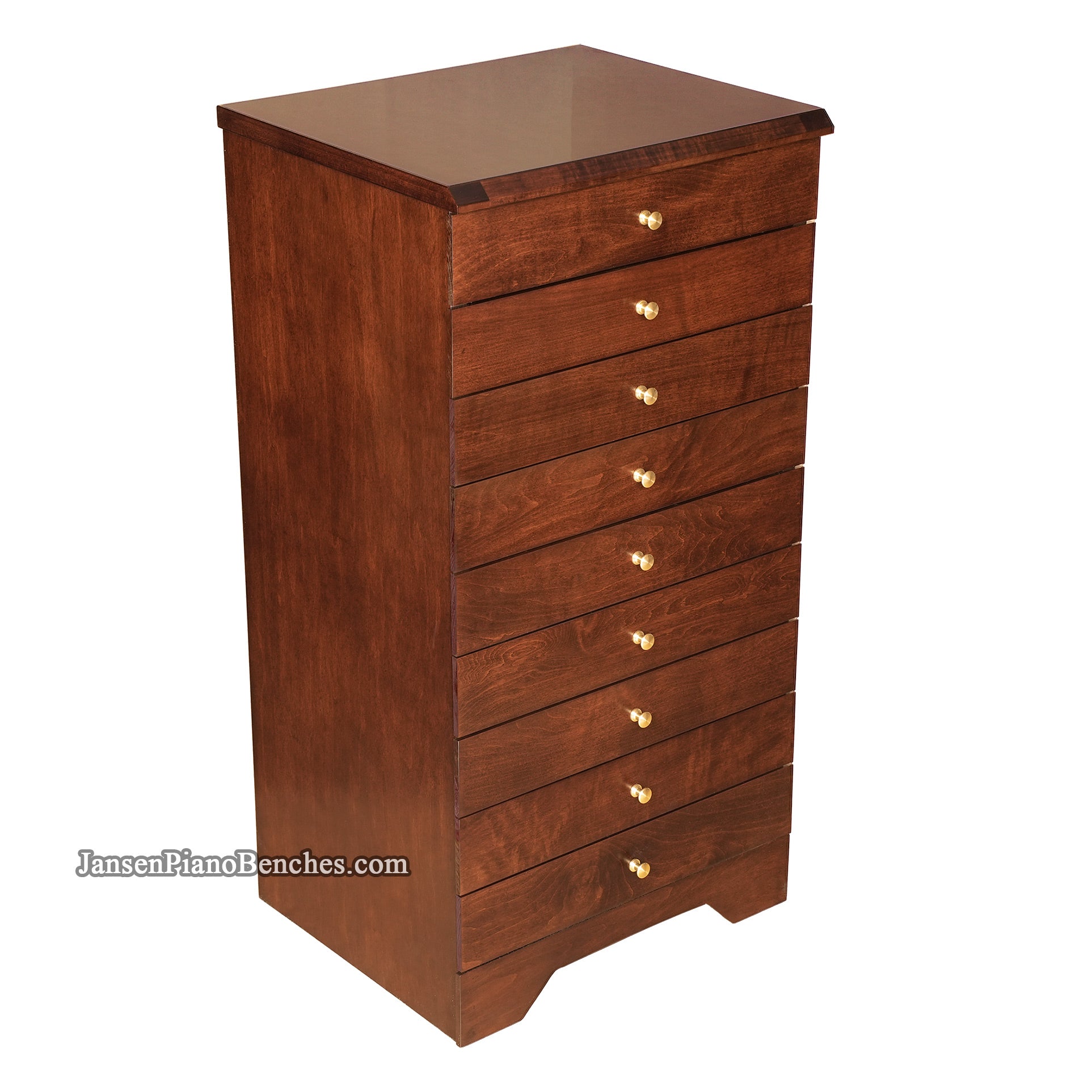 Widely regarded as the highest-quality Sheet Music Cabinet on the market, this offering by Paul Jansen & Son is the perfect combination of elegance, functionality, and durability. Proudly made in the USA for over 50 years by the trusted creators of Steinway piano benches, this attractive cabinet is meticulously crafted from solid hardwood maple, a material known for its strength, durability, and resistance to warping. Maple’s dense grain structure ensures your cabinet will maintain its shape and beauty for years to come, making it an ideal choice for storing and organizing sheet music. These durable, easy-to-work-with cabinets make the most of every square-inch of space, and come pre-assembled.