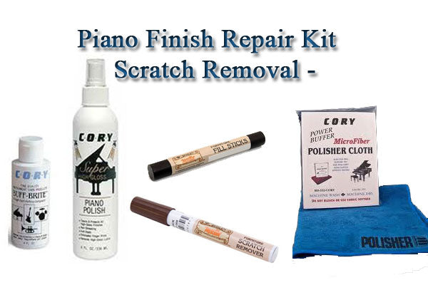 Finally, the piano finish repair kit comes with either an 8oz bottle of Cory High Gloss Piano Polish or Cory Satin Sheen Piano Polish, based on the finish of your piano (select which polish you would like at the drop-down menu). When you're buffing out the small scratches of your piano with the Cory Buff-Brite, for example, you will have one small area of your piano that will be clean and shiny--which will make it stand out from the rest of the piano. Complete the job, and use the Cory Piano Polish to give your entire piano that clean and polished look.