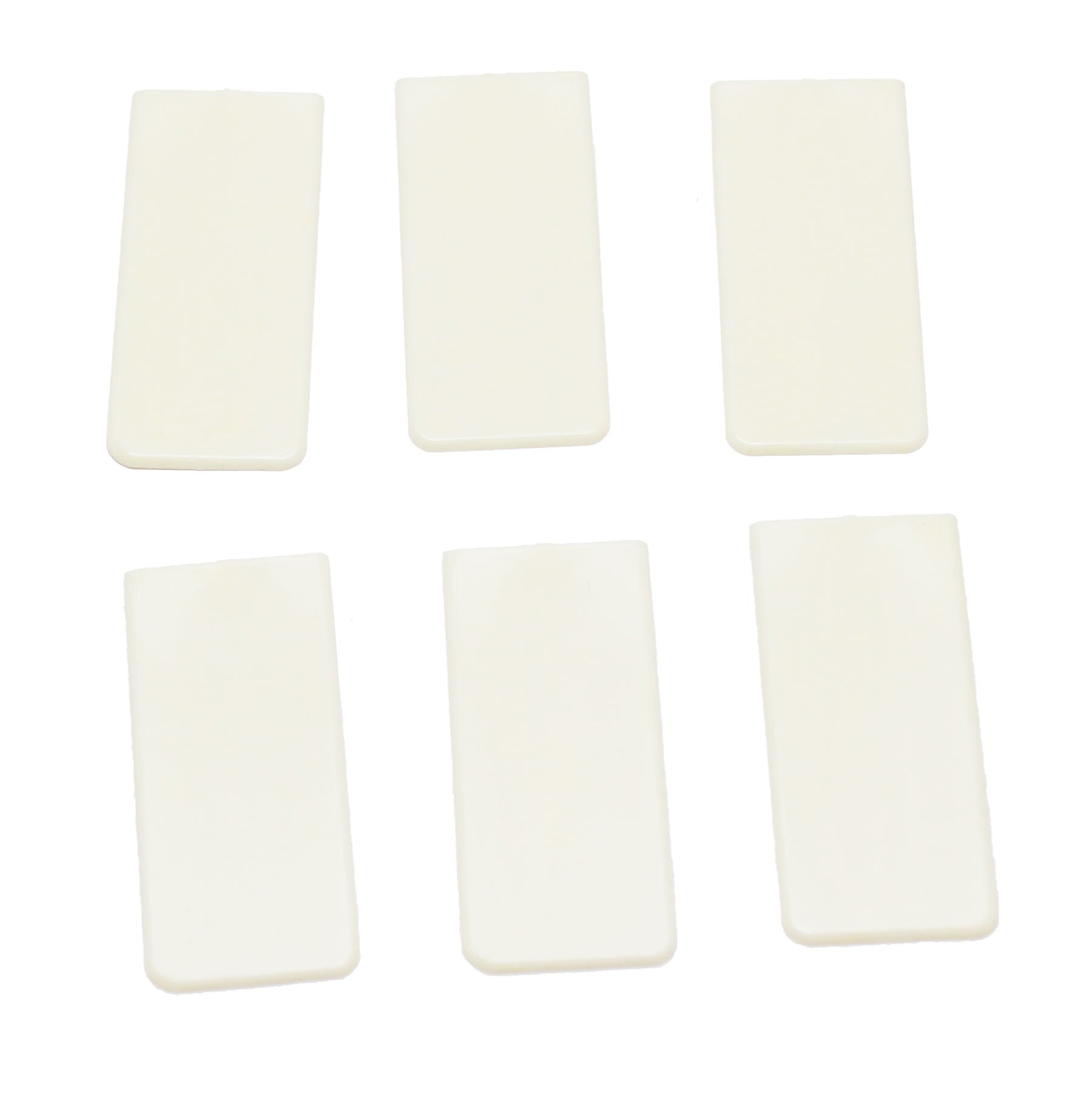 Set of 6 piano keytop heads. Available in a simulated ivory or light ivory finish, these keys are designed to be a close color match to most genuine ivory keytops. The simulated grain design mimics the look of real ivory.
