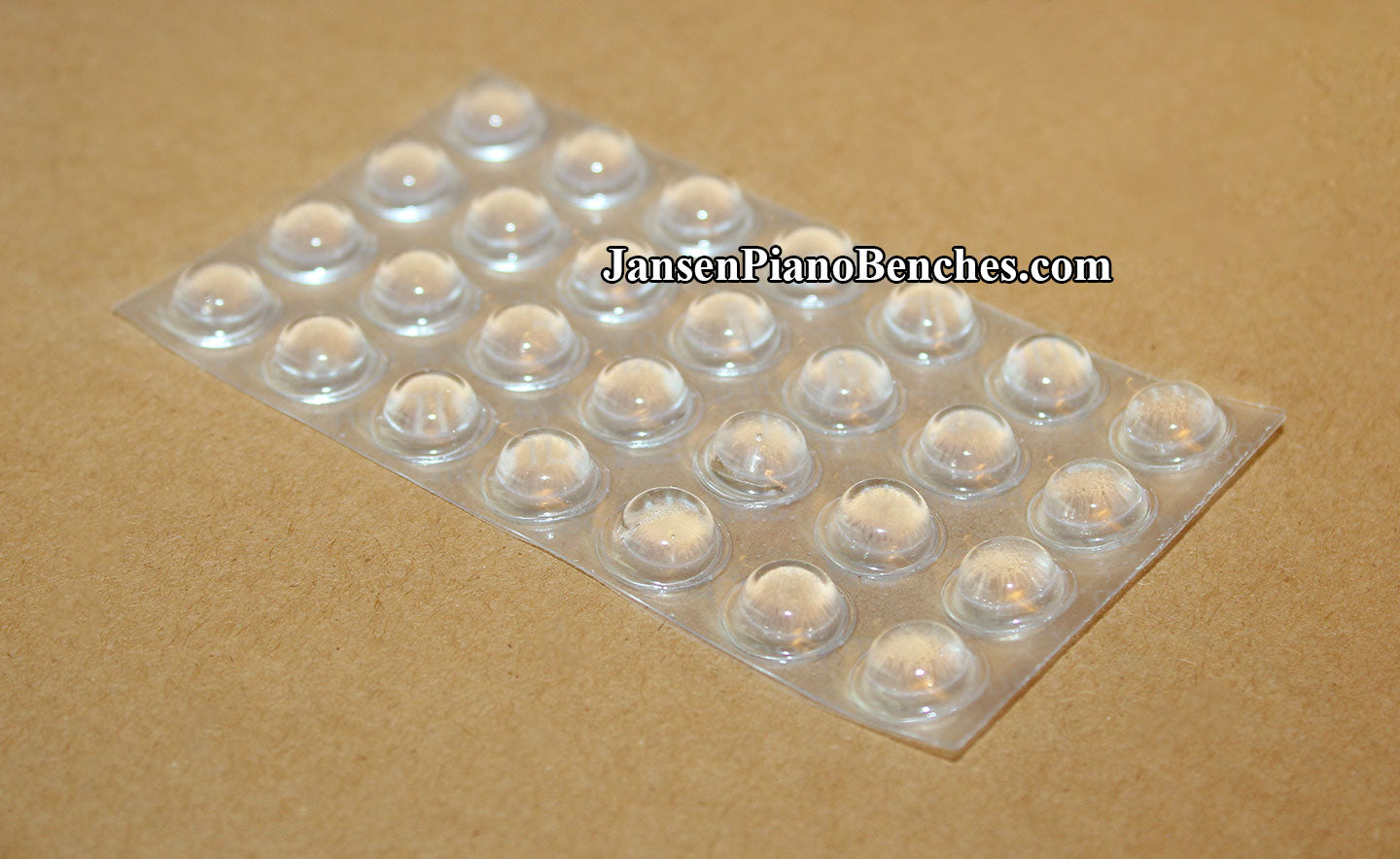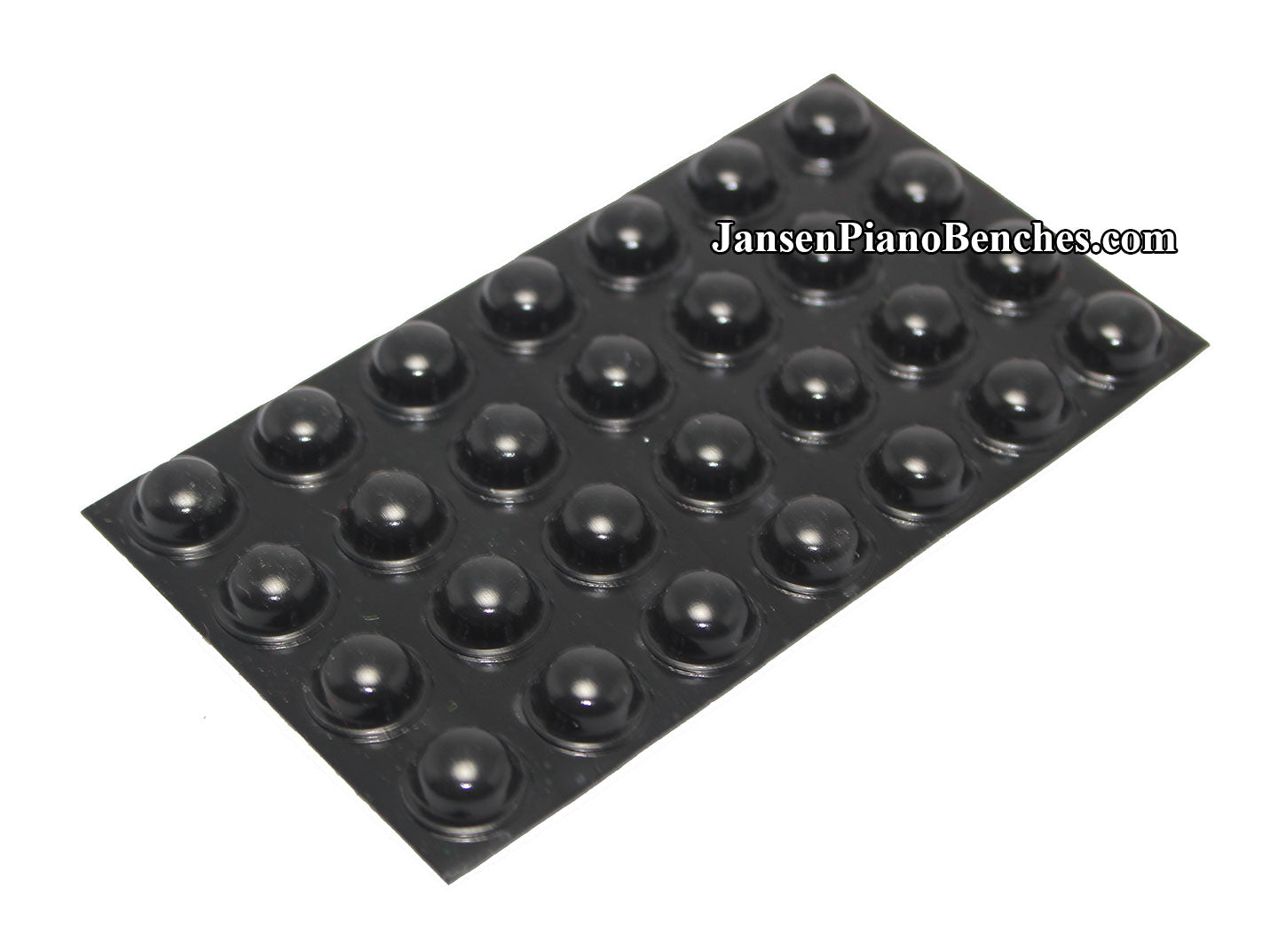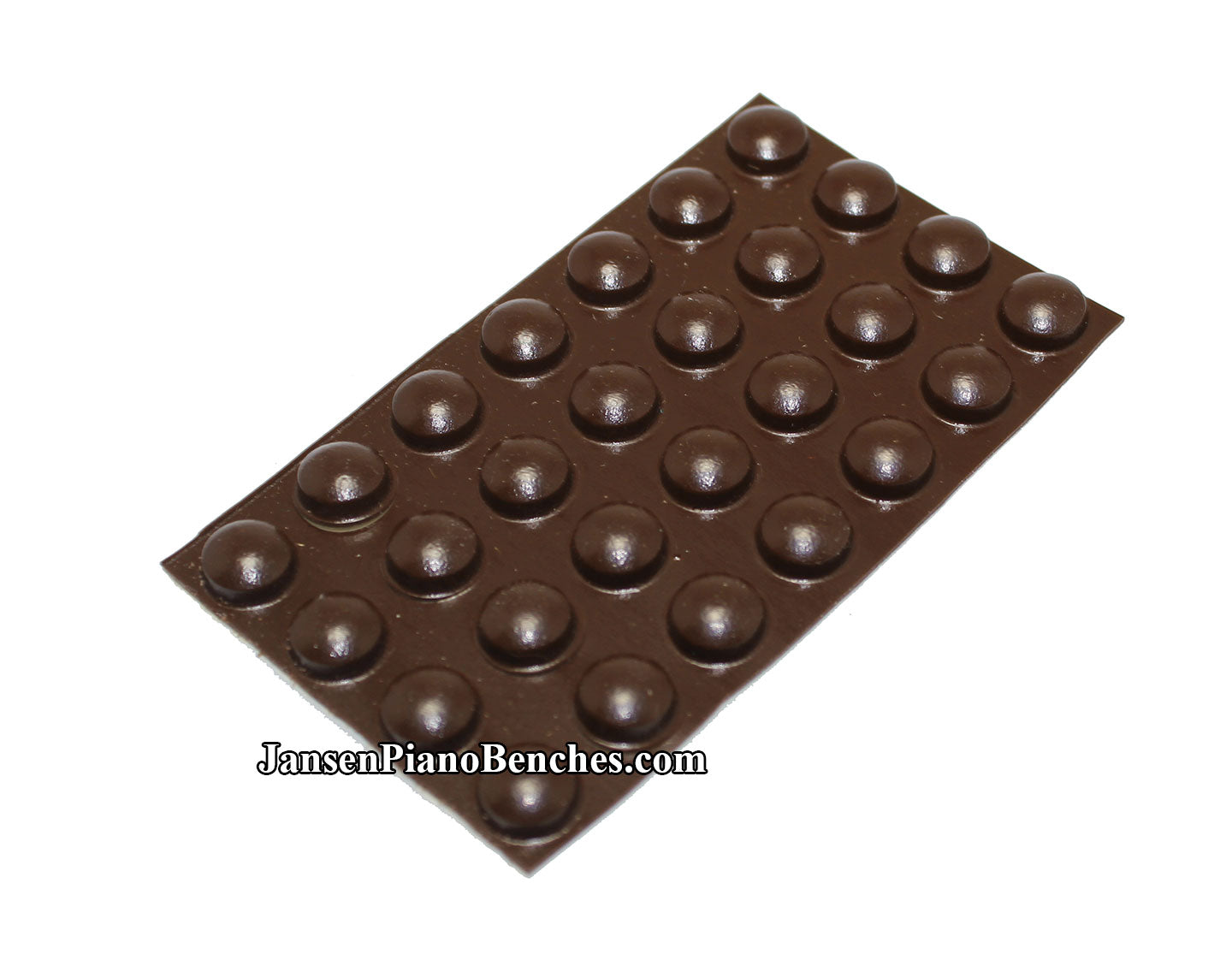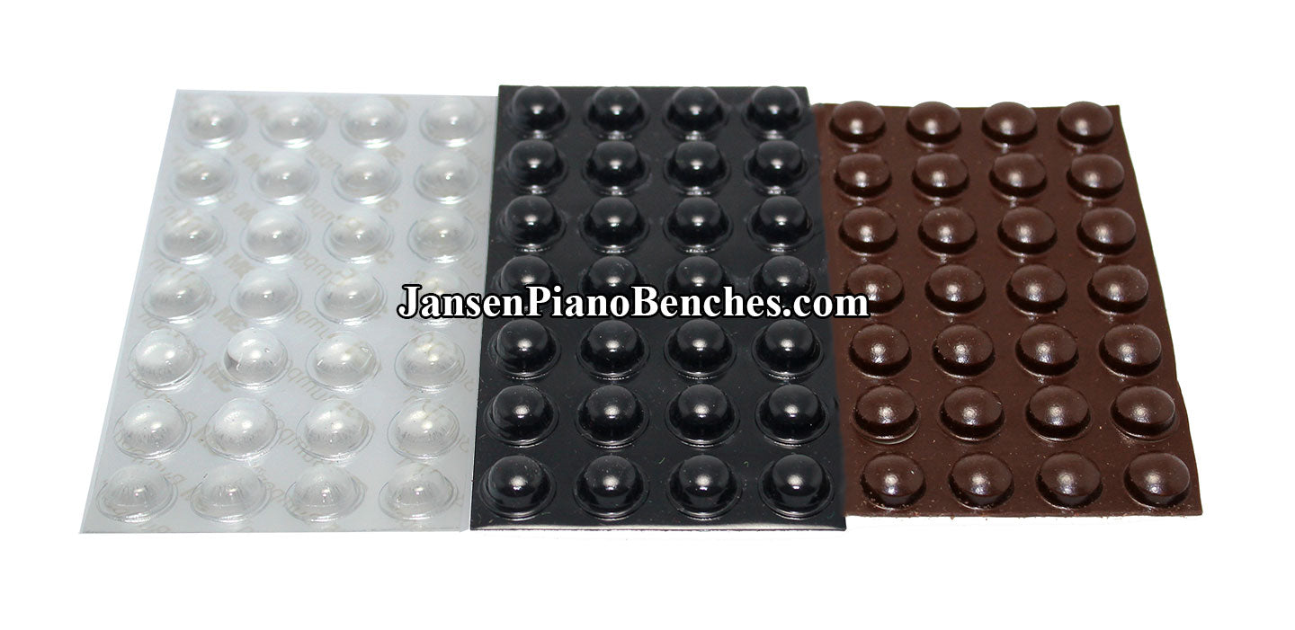 These self-adhesive rubber piano cabinet buttons will peel off and stick to most surfaces. Use on cabinets, fallboards, grand lids, etc. Individual buttons measure 7/16" diameter x 3/16" high. Available in black, brown or clear.