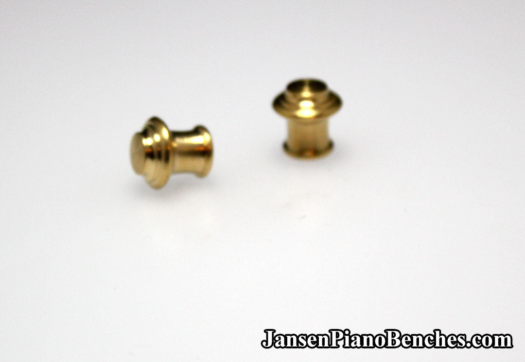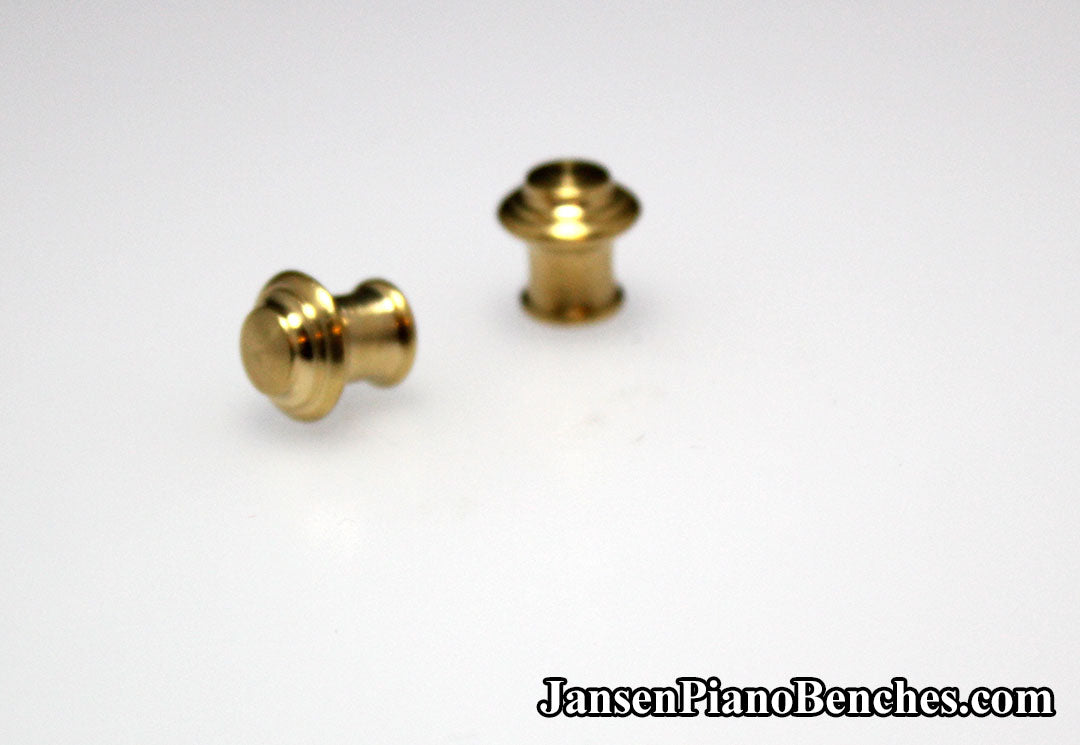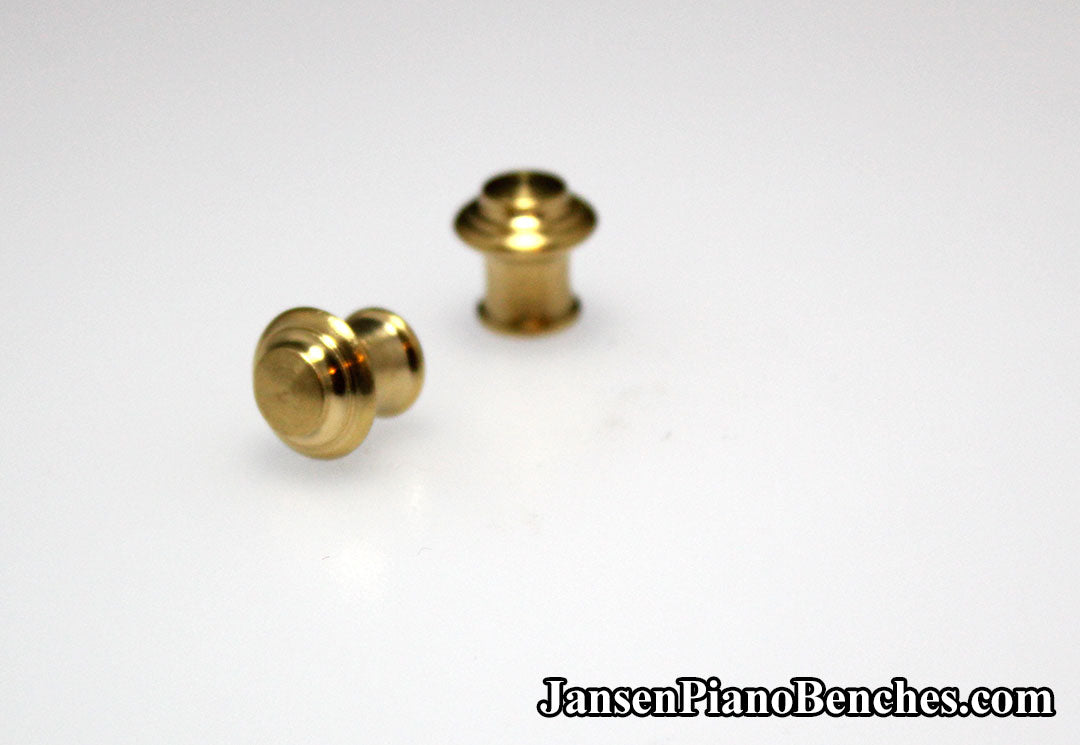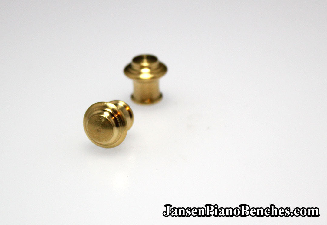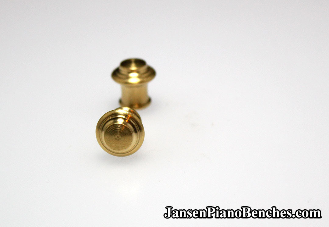 The tiered brass piano desk knobs are designed specifically for pianos and made out of solid brass. Knobs measure 1/2" in diameter and 1/2" in height. Also can be used on furniture projects. Installation is quick and easy, and this is an inexpensive way to breathe new life into the look of your piano.