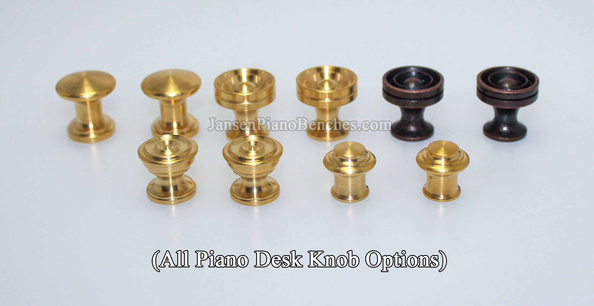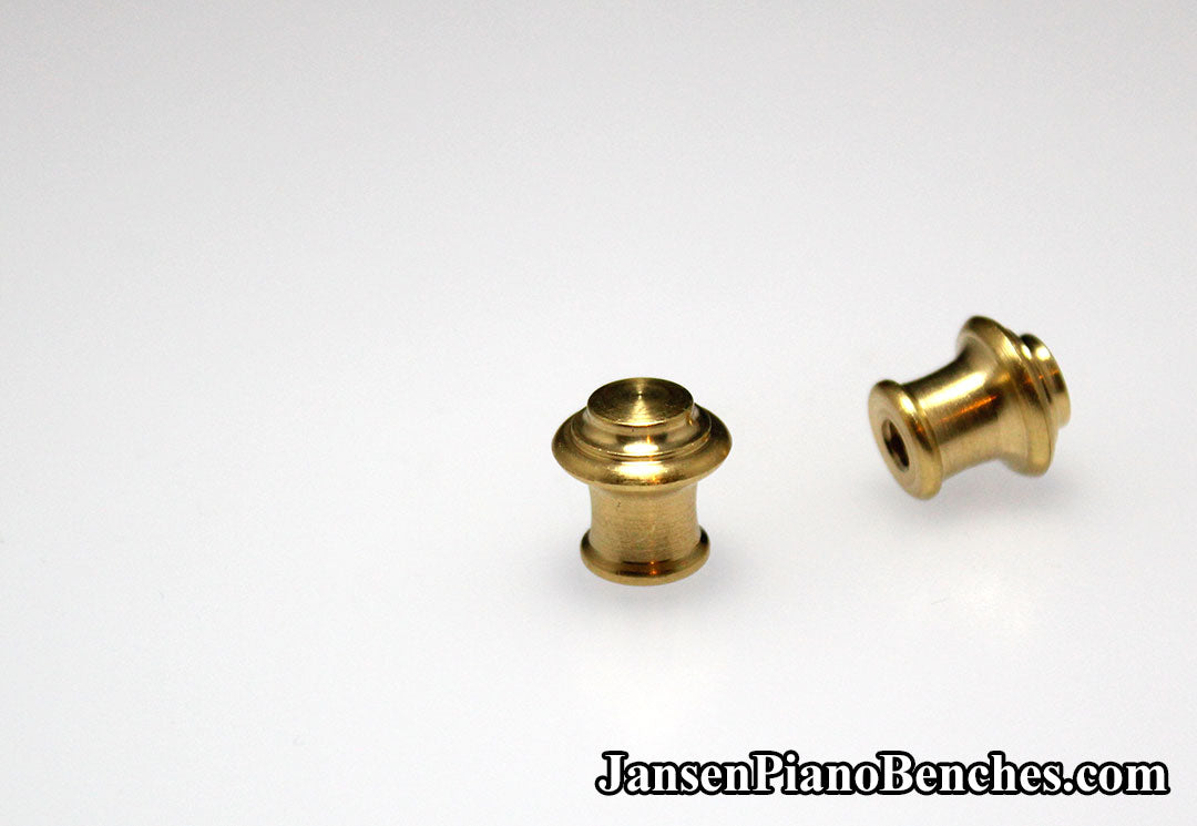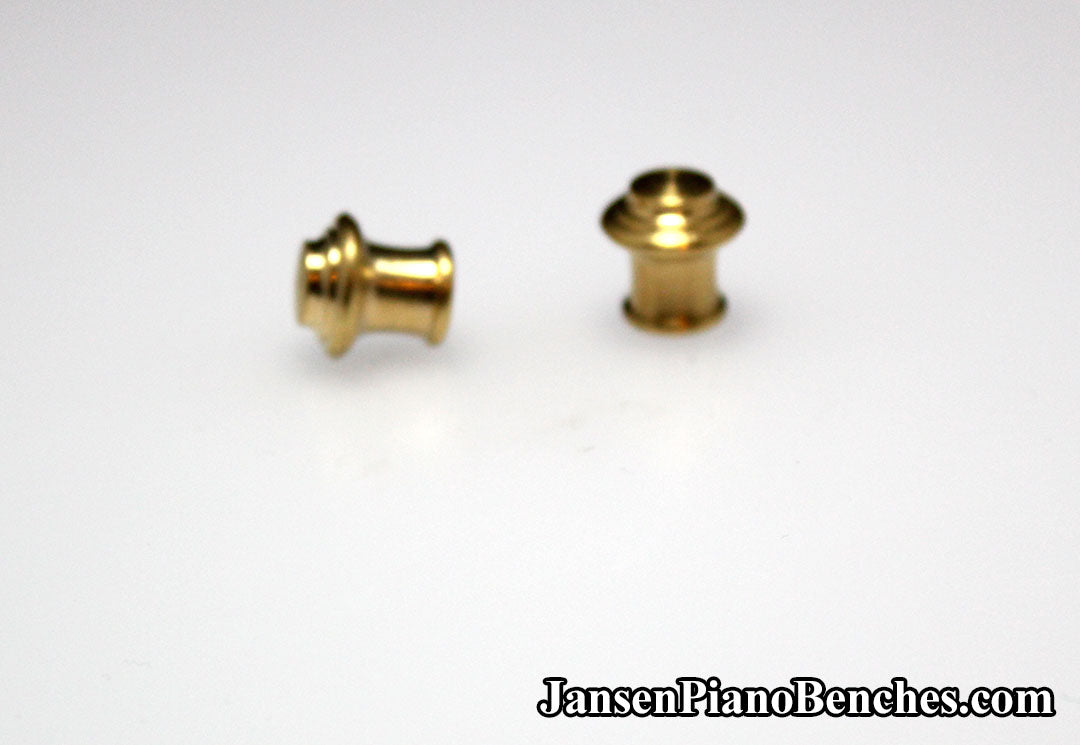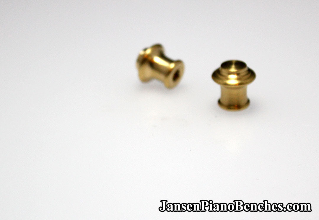 The tiered brass piano desk knobs are designed specifically for pianos and made out of solid brass. Knobs measure 1/2" in diameter and 1/2" in height. Also can be used on furniture projects. Installation is quick and easy, and this is an inexpensive way to breathe new life into the look of your piano.